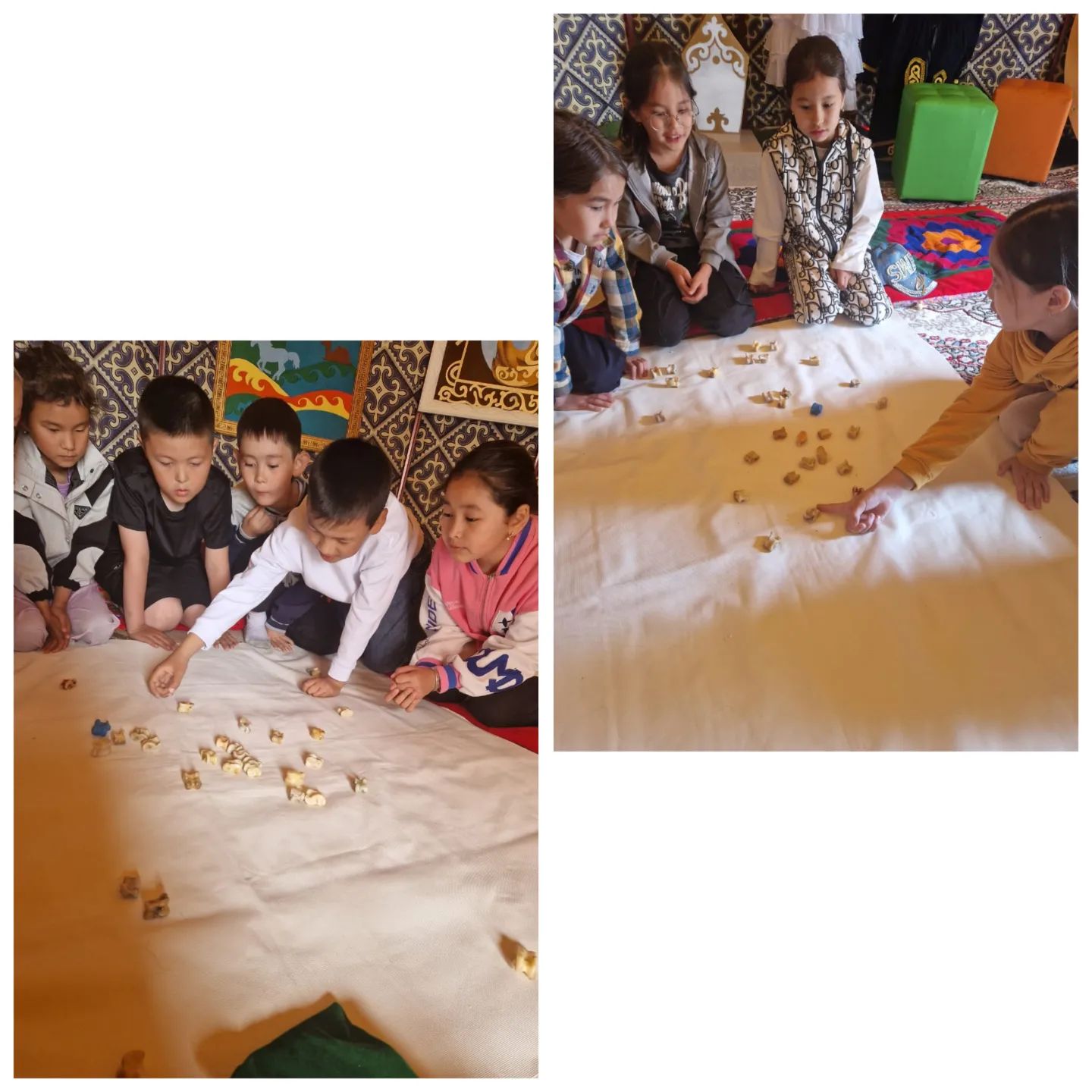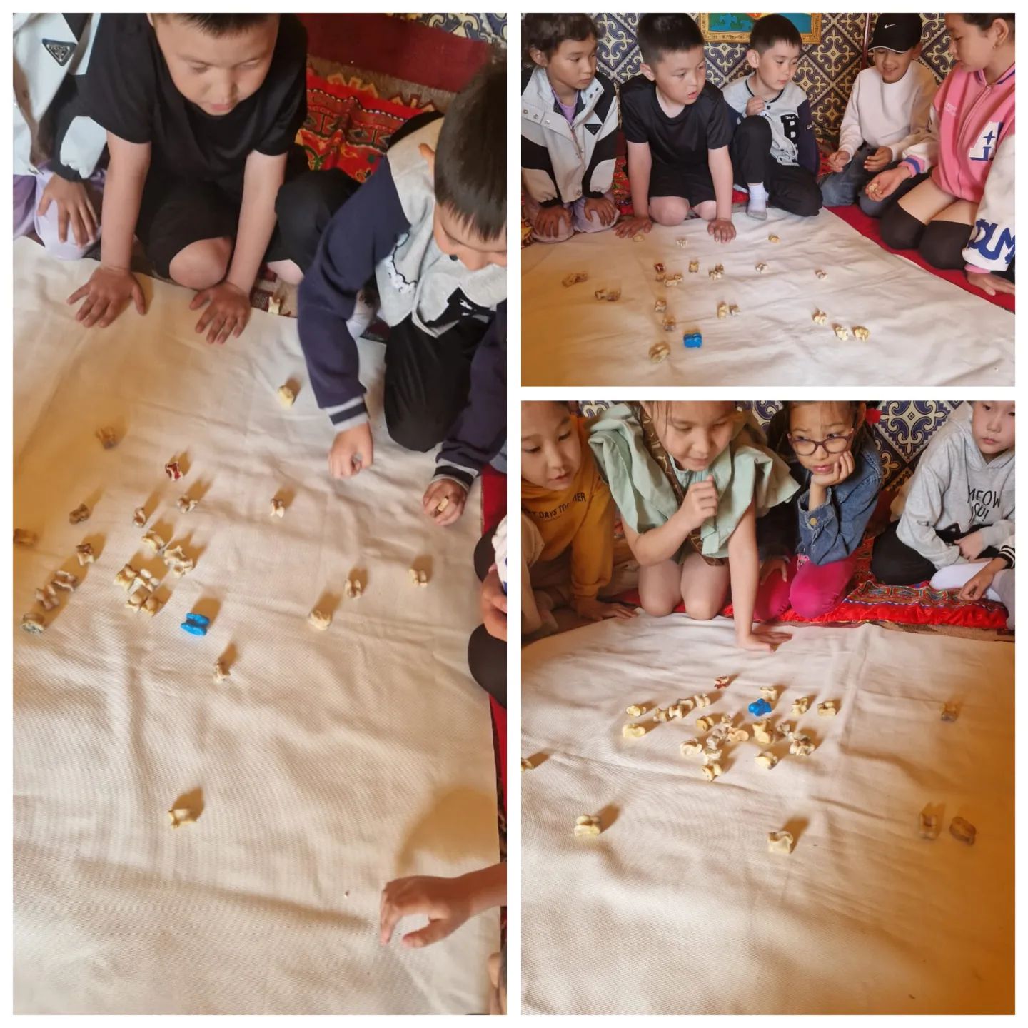 ♻️♻️♻️Сағат 9.20 дан бастап киіз үй ішінде балалар “Ханталапай” ойынын ойнады.Бұл ойын арқылы асықпен ойналатын ұлттық ойындар бар екенін түсінді және асықтың әр жағының аталуын білді.