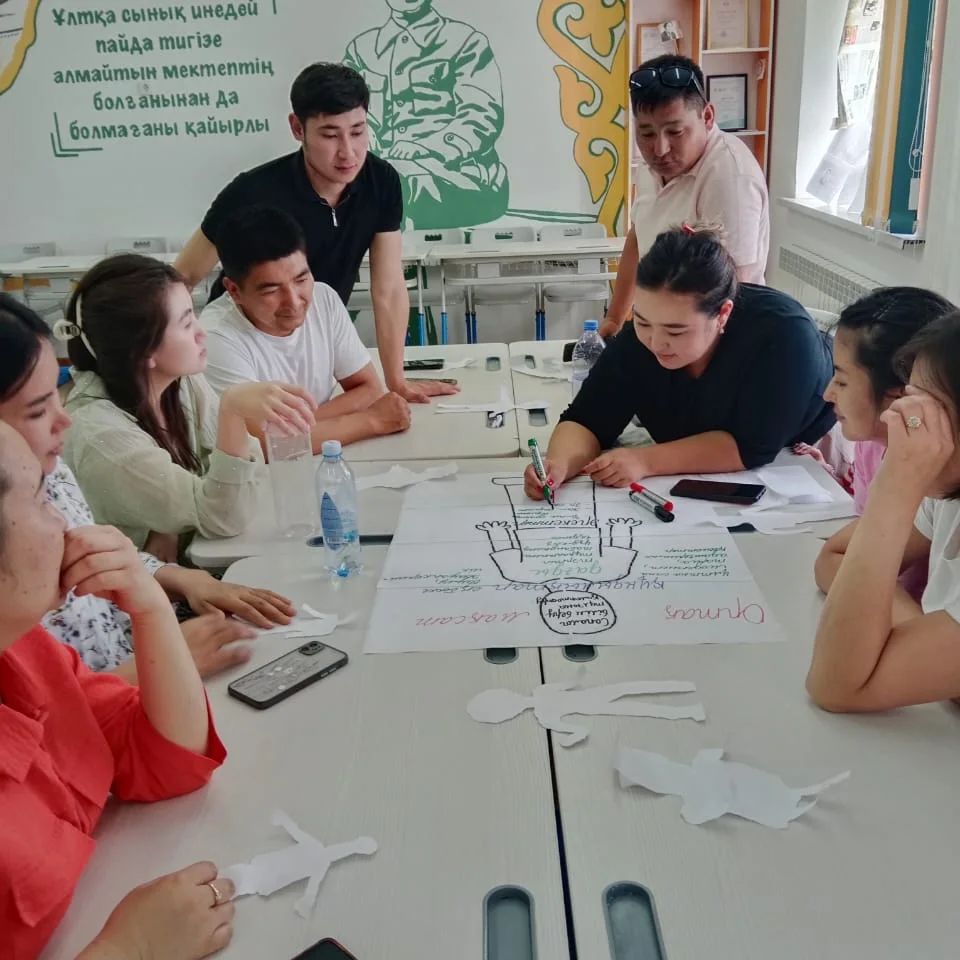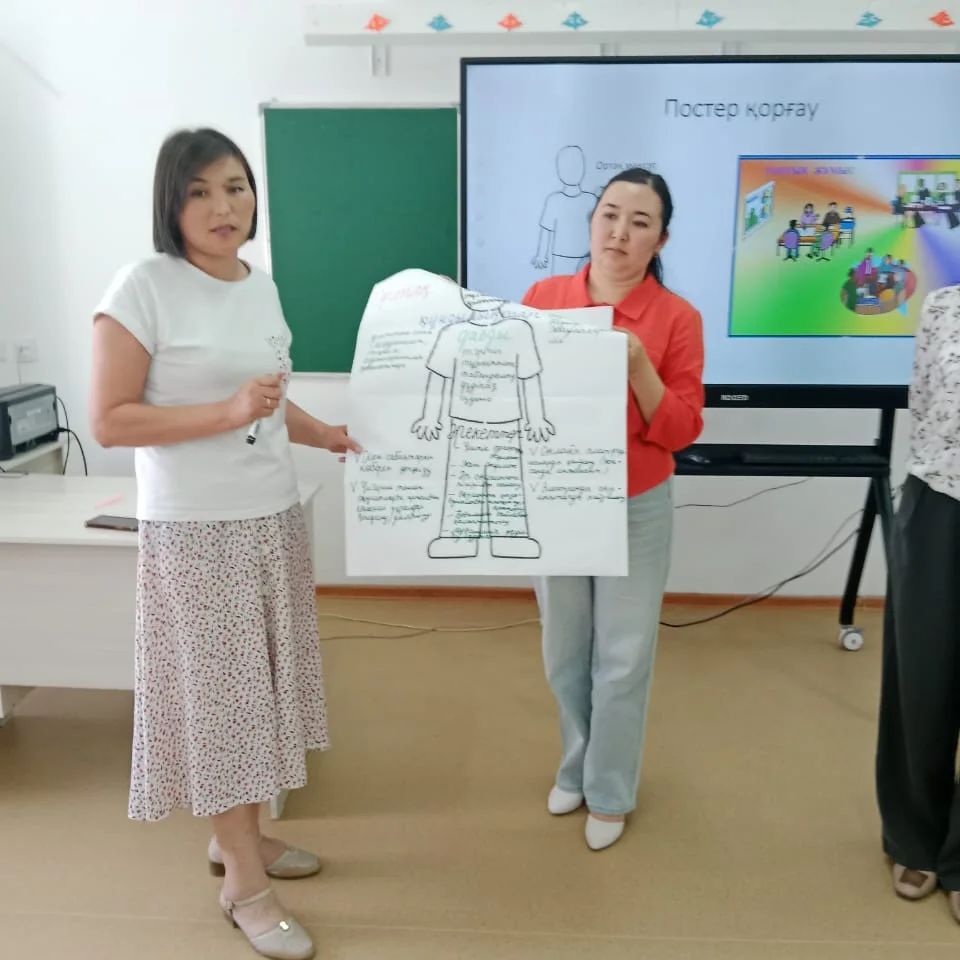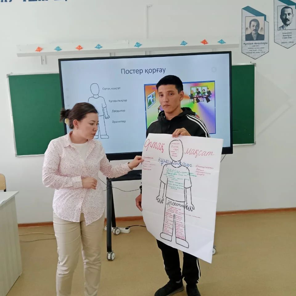 Коучинг барысында ұстаздар екі топқа бөлініп, мұғалімнің ортақ мақсатын анықтап, оқушының бойына сіңіретін құндылықтар мен дағдылар талқыланып, ұстаздың мақсатқа жету жолындағы әрекеттері постер сипатында қорғалды.